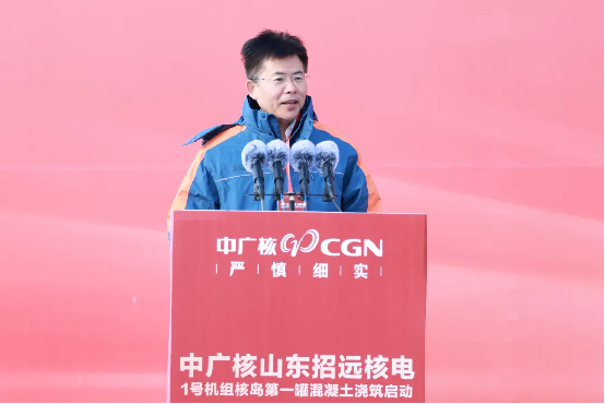 龐松濤代表集團公司對項目建設全面啟動表示祝賀,對國家相關部委、山東省各級黨委和政府給予的指導支持,以及合作伙伴、一線建設者的辛勤付出表示感謝。他指出,作為中廣核第十個核電基地,招遠核電項目的高質量推進意義深遠,不僅為集團“十四五”目標實現提供了有力支撐,為“十五五”開篇布局筑牢根基,更為山東加快構建新型能源體系注入強勁動力,為保障國家能源安全、實現“雙碳”目標貢獻中廣核力量。他對全體建設團隊提出三點要求:一要提高政治站位,深學篤行習近平總書記對核電行業和中廣核的重要指示批示精神,堅守“安全第一、質量第一、追求卓越”原則,嚴守安全生產紅線,確保核安全絕無一失。二要聚焦關鍵技術攻關與數字化轉型,創新核能綜合利用模式,形成可復制推廣的技術和管理經驗,持續迭代提升建設水平。三是要立足“高標準打造百年精品工程”定位,深度融入地方能源規劃,積極培育核風光儲一體化清潔能源產業集群與新質生產力,助力山東省能源綠色低碳轉型。