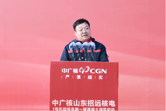 龐松濤代表集團公司對項目建設全面啟動表示祝賀,對國家相關部委、山東省各級黨委和政府給予的指導支持,以及合作伙伴、一線建設者的辛勤付出表示感謝。他指出,作為中廣核第十個核電基地,招遠核電項目的高質量推進意義深遠,不僅為集團“十四五”目標實現提供了有力支撐,為“十五五”開篇布局筑牢根基,更為山東加快構建新型能源體系注入強勁動力,為保障國家能源安全、實現“雙碳”目標貢獻中廣核力量。他對全體建設團隊提出三點要求:一要提高政治站位,深學篤行習近平總書記對核電行業和中廣核的重要指示批示精神,堅守“安全第一、質量第一、追求卓越”原則,嚴守安全生產紅線,確保核安全絕無一失。二要聚焦關鍵技術攻關與數字化轉型,創新核能綜合利用模式,形成可復制推廣的技術和管理經驗,持續迭代提升建設水平。三是要立足“高標準打造百年精品工程”定位,深度融入地方能源規劃,積極培育核風光儲一體化清潔能源產業集群與新質生產力,助力山東省能源綠色低碳轉型。